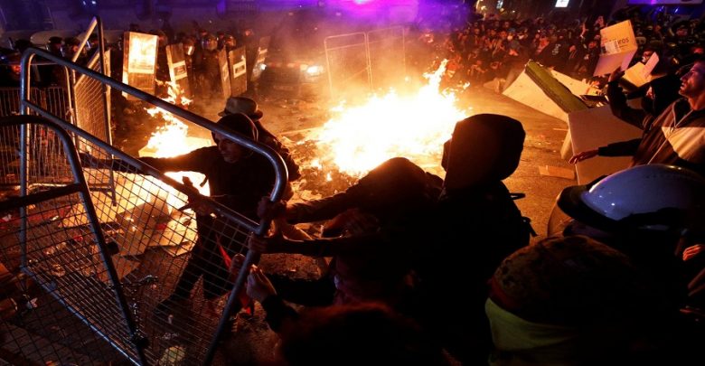 وشهدت الاحتجاجات إشعال الحرائق كما حاول المتظاهرون اقتحام المكاتب الحكومية في برشلونة، عاصمة الإقليم. واندلعت الاحتجاجات غضبا من حكم أصدرته محكمة إسبانية، يوم الاثنين، بالسجن على تسعة زعماء انفصاليين من كاتالونيا.