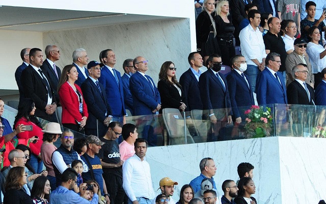 سجلت النسخة 13 من ملتقى محمد السادس لألعاب القوى الرباط ورابع محطات العصبة الماسية، التي نظمت مساء أول أمس الأحد، بالمجمع الرياضي الأمير مولاي عبد الله بالعاصمة بالرباط، حضورا وازنا لشخصيات سياسية ورياضية، يتقدمها عزيز أخنوش رئيس الحكومة، إلى جانب عبد السلام أحيزون رئيس الجامعة الملكية لألعاب القوى، فيصل لعرايشي رئيس اللجنة الأولمبية الوطنية إضافة إلى شكيب بنموسى وزير التربية الوطنية والتعليم الأولي والرياضة وكمال لحلو رئيس الجامعة الملكية لرفع الأثقال ومسؤولين آخرين.