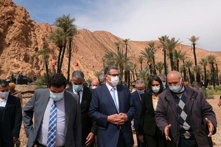 الممتد على مساحة 325 هكتارا وبتكلفة إجمالية قدرها 5.39 ملايين درهم، دواوير أفيلال وكدورت وأكرض نيملالت. ويشمل مشروع المحافظة على الأراضي الفلاحية والمنشآت المائية على ضفاف الواحة، الذي تقدر تكلفته المالية ب 22.5 مليون درهم، المحافظة على الأراضي الفلاحية والأجزاء المتدهورة على مستوى ضفاف الواحة بواسطة الحماية الميكانيكية (المتاريس الحجرية) وكذا إصلاح منحدرات الوديان ضد الانجراف المائي وحماية المنشآت المائية. أما المشروع الكبير لتأهيل واحة آيت منصور، فيتضمن التنمية السياحية لموقع «تلات إيسي» الذي تشرف عليه شركة التنمية السياحية الجهوية بسوس ماسة وكذلك المدرسة الحقلية الخاصة بإنتاج الخضر البيولوجية والنباتات العطرية والطبية عبر منهجية الملقحات البرية المثبتة على مستوى «دوار تلات»- الجماعة الترابية لـ «أفلا إغير». وقد ارتفعت ميزانية تدخلات المدرسة الحقلية منذ سنة 2020، إلى 54 ألفا و 260 درهما. وتهدف إلى المحافظة على ملقحات التنوع البيولوجي ومواجهة التغيرات المناخية والرفع من الإنتاجية ودخل الفلاحين. وبالمناسبة، قام الوزيران، والوفد المرافق لهما، بزيارة للأراضي الفلاحية التي تستغلها التعاونيات الخدماتية، حيث تم الاطلاع على عمليات تنقية الواحة وتثمين مخلفات النخيل وتحويلها إلى سماد حيوي. وتم، على هامش هذه الزيارة، توقيع عدد من الاتفاقيات، إذ يتعلق الأمر باتفاقية بين الوكالة الوطنية لتنمية مناطق الواحات وشجر اﻷركان وخمسة تعاونيات خدماتية، واتفاقية خاصة تتعلق بدعم إحداث التعاونيات الخدماتية بين وزارة الفلاحة والصيد البحري والتنمية القروية والمياه والغابات ووزارة السياحة والصناعة التقليدية والنقل الجوي والاقتصاد الاجتماعي.