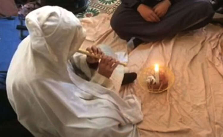 ويُبين أحد الأشرطة فتاة عارية بالكامل وهي واقفة وبين رجليها «مِجمر» به بعض البخور يتصاعد دخانه من تحتها، بعدما أوهمها المشعوذ أن فك عقدها ومشاكلها يتطلب أن تكون عارية كما ولدتها أمها، وأن تقوم بذلك، فيما يظهر شريط آخر المشعوذ مجردا من ملابسه ومستلقيا على ظهره وسيدة طاعنة في السن عارية هي الأخرى في حالة ممارسة جنسية، وهناك شريط آخر لشابة أخرى مستلقية على ظهرها وهو يمارس عليها الجنس، وفي شريط آخر فتاة بين أحضانه تتوسل إليه بلهجة «حسانية» أن يمارس الجنس معها دون أن يوثق ذلك بكاميرا التصوير، حيث حاولت منع الكاميرا بيدها لحظة شروعه في تقبيلها.