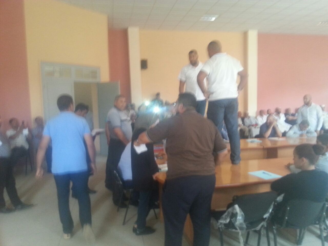 وقبل إعلان ممثل السلطة المحلية عن افتتاح أشغال جلسة انتخاب الرئيس والمكتب المسير للجماعة القروية “اسعادة”، انتفض مستشارو حزب العدالة والتنمية (06 أعضاء من أصل 35 المشكلين للمجلس)، في وجه الأغلبية التي أصبح يقودها حزب الأصالة والمعاصرة، حيث طالب مستشارو “المصباح”، إلى جانب خمسة مستشارين آخرين، من تحالف الأغلبية أن يدلوا بورقة الاستدعاء إلى جلسة إعادة انتخاب رئيس جديد، وهو الأمر الذي رفضه مستشارو التحالف الذي يقوده “البام”، ما جعل الرئيس السابق المنتمي لحزب “البيجيدي” يقف فوق الطاولات ويحلف بأغلظ الأيمان أن الجلسة لن تواصل عملها دون اشهار ورقة الاستدعاء.
