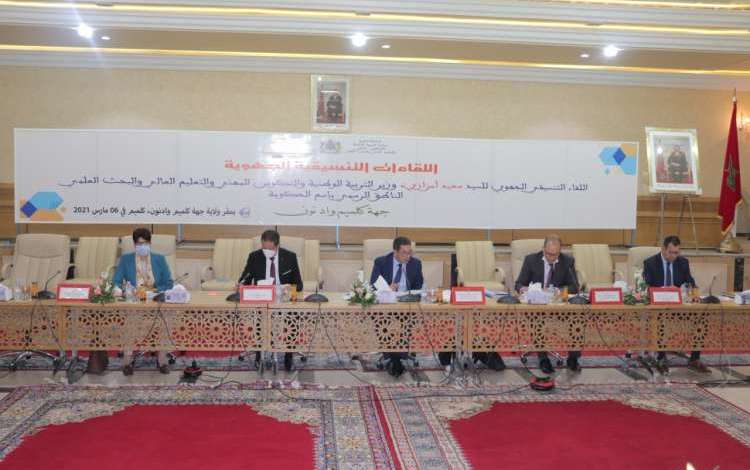 ترأس سعيد أمزازي، وزير التربية الوطنية والتكوين المهني والتعليم العالي والبحث العلمي، يوم السبت 06 مارس 2021 بمقر ولاية جهة كلميم وادنون، أشغال اللقاء التنسيقي الجهوي مع السلطات الولائية والمنتخبين والشركاء. وتأتي هذه الزيارة في سياق المتابعة الميدانية التي تقوم بها الوزارة للأكاديميات الجهوية.