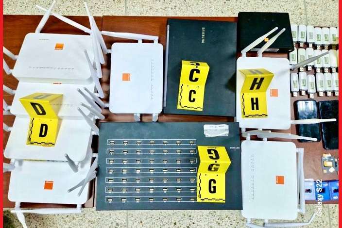 كما أسفرت عملية التفتيش المنجزة بداخل منزل المتهم عن حجز 471 شريحة هاتفية وطنية و58 بطاقة تعبئة، فضلا عن حاسوب محمول، ووحدة مركزية للكمبيوتر، و52 جهازا إلكترونيا، ودعامات معلوماتية تستعمل في هذا النشاط الإجرامي.