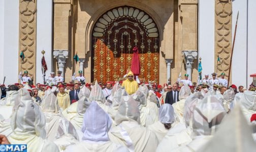وشكل هذا الحفل البهيج، الذي يتوج الاحتفالات المخلدة للذكرى الرابعة والعشرين لتربع صاحب الجلالة الملك محمد السادس، أيده الله، على عرش أسلافه الميامين، مناسبة لممثلي الجهات الاثنتي عشر للمملكة، لتجديد تشبثهم بشخص جلالة الملك وبأهداب العرش العلوي المجيد، وللتأكيد من جديد، على أن الصلة التي تجمع العرش بالشعب تظل متجذرة في عمق تاريخ البلاد وأنها شكلت على الدوام الأساس المتين للأمة المغربية والتعبير الأسمى عن مدى تماسكها واستمراريتها.