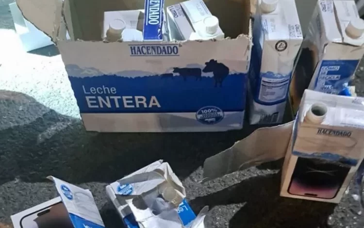 وعثرت العناصر الجمركية على 29 هاتف من نوع “آيفون”، أغلبها من الإصدار الأخير، مخبأة داخل علب للحليب.