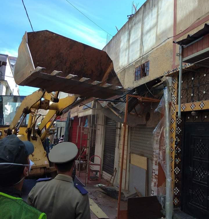 تواصل السلطات المحلية بالملحقة الإدارية 14 معززة بأعوانها ورجال الشرطة حملة هدم واسعة على واجهات المحلات التجارية التي تستعمل الغطاءات البلاستيكية والألواح الخشبية والقصديرية التي شوهت جمالية الأحياء وعرقلت حركة المرور وخلقت الفوضى في احتلال الملك العمومي، الأمر الذي دفع السلطات بالقضاء على هذه البؤر التي خلقت الاكتظاظ في وسط المتبضعين في ظل جائحة كورونا.