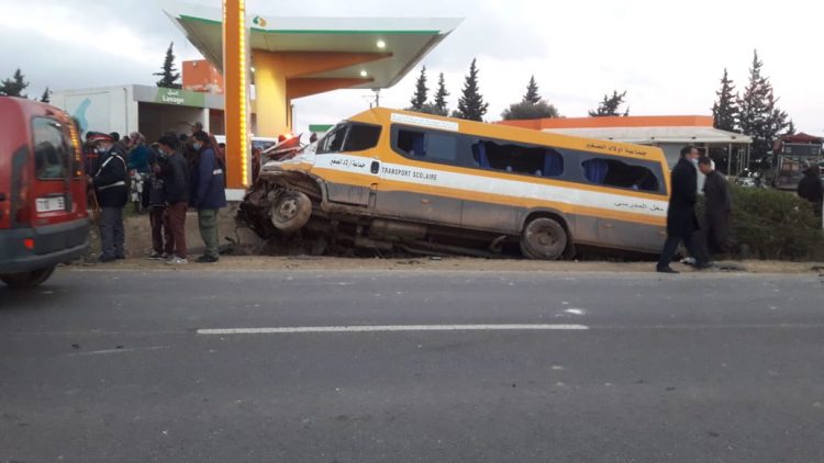 واستنادا إلى مصادر «الأخبار» فإن الحادثة وقعت عندما تفاجأ سائق حافلة للنقل المدرسي التي تقل 32 تلميذا وتلميذة من الثانوية الإعدادية أولاد الصغير، في اتجاه أولاد رحو، وعلى بعد حوالي 3 كيلومترات من مركز جماعة أولاد الصغير في اتجاه سطات بالطريق الجهوية رقم 308 وبالضبط بالنقطة الكيلومترية 19على مستوى دوار شرقاوة، بسيارة أجرة تتجاوز الخط المتصل حينها حاول سائق الحافلة تفادي الاصطدام بإحدى السيارات، لكن سرعة إحداها لم تترك فرصة لتجنب الاصطدام، مما تسبب في انحراف حافلة النقل المدرسي والسيارتين، وأدى ذلك إلى إصابة جميع ركاب الحافلة المدرسية و3 من ركاب سيارة الأجرة بجروح متفاوتة الخطورة، الأمر الذي عجل باستنفار مختلف الأجهزة من السلطات المحلية والوقاية المدنية والدرك الملكي، التي هرعت إلى عين المكان حيث تمت الاستعانة بعدد من سيارات للإسعاف تابعة للجماعات القروية وأخرى تابعة للوقاية المدنية، لنقل المصابين إلى قسم المستعجلات بالمستشفى الإقليمي الحسن الثاني بسطات، لتلقي العلاجات الضرورية وتشخيص حالات المصابين.