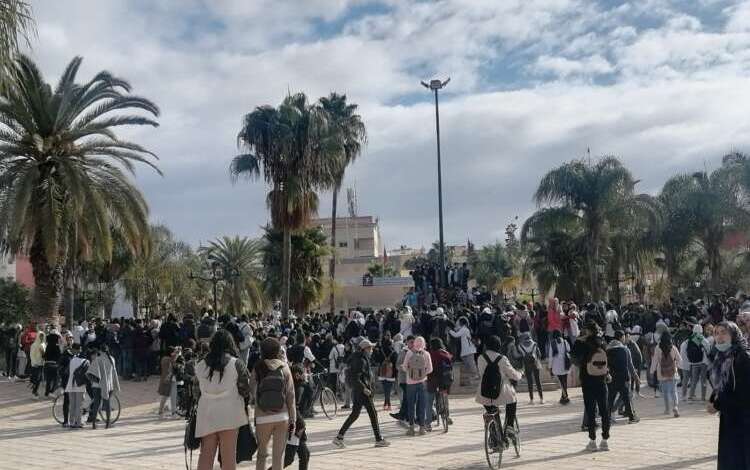 احتجاج تلاميذ بسيدي سليمان ضد نظام الموحد