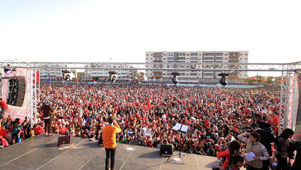 وأفاد صاحب المبادرة سعيد بيبو، أن الملعب الكبير بمدينة طنجة يحتضن هذا الحدث الفني الوطني، على الساعة الرابعة زوالا، حيث ينتظر أن يحج إليه أزيد من 35 ألف طفل، سيصدحون بصوت واحد ووحيد “المغرب في صحرائه والصحراء في مغربها”، وهو عنوان موضوع هذا الحفل الوطني المميز، المنتظر أن تتابعه وسائل إعلام وطنية ودولية.