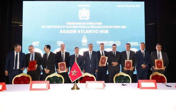 جرت، أمس الإثنين بأكادير، مراسم توقيع بروتوكول تفاهم لإنجاز الميناء الجاف لأكادير ( Agadir Atlantic Hub)، خلال حفل ترأسه رئيس الحكومة، عزيز أخنوش.