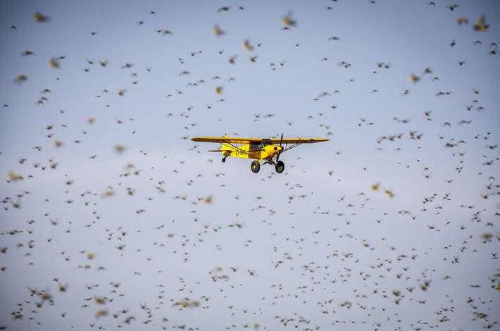 بعد أسابيع على ظهور بؤر للجراد الصحراوي بعدد من المناطق الصحراوية على طول شريط وادي درعة بالنفوذ الترابي لإقليم طاطا، قرر المركز الوطني لمحاربة الجراد الذي يوجد مقره بمدينة أيت ملول أخيرا، بدء عمليات محاربة الجراد باستعمال المروحيات.