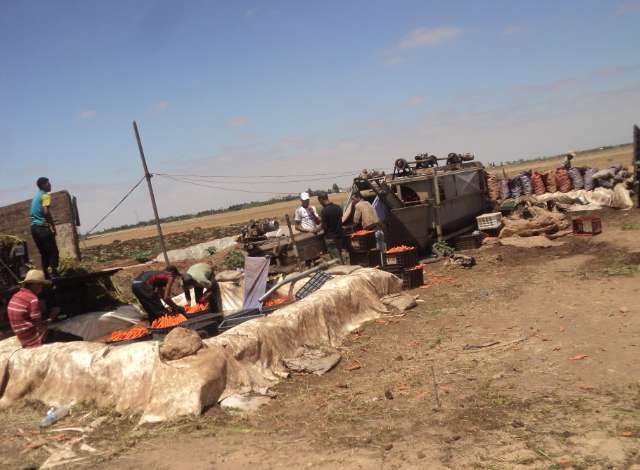 وطالب سكان دوار البصاصلة، بجماعة المباركيين، الأكثر تضررا من عملية زراعة الجزر والبطاطس بتدخل السلطات المحلية لوضع حد لهذه الفوضى جراء نضوب عشرات الآبار غير القانونية داخل عشرات الهكتارات التي يتم كراؤها من طرف مزارعي الجزر والبطاطس، والتي يتم استغلال مياهها الجوفية من طرف العديد من المزارعين، ضمنهم منتخبون ورئيس جماعة قروية وعضو بالغرفة الفلاحية يستغل، بحسب الشكاية التي وضعت على مكتب عامل إقليم برشيد، عدة عقارات فلاحية عن طريق الكراء من الغير بدواوير البصاصلة والحداية أولاد الصغير، من أجل الزراعة السقوية، مستغلا مجموعة من الآبار التي تعمل على مدار الساعة، بالإضافة الى استعمال أنابيب لسقي أراض أخرى تبعد عن تلك الآبار بأزيد من 11 كيلومترا (من دوار البصاصلة إلى طريق الوحدة)، ما جعل الآبار، التي كانت في وقت سابق بعمق 80 مترا وتستغل في الشرب، تجف بسرعة، فضلا عن انخفاض منسوب المياه الجوفية ببعض المناطق، ما خلق أزمة عطش لدى الساكنة وكذا الفلاحين الصغار، الذين كانوا يستعملون الآبار في الشرب أو لسقي الأراضي ذات المساحة الصغيرة، فضلا عن الكارثة الكبرى التي تتسبب في هدر المياه من خلال غسل الجزر الذي يتطلب كميات كبيرة من مياه الآبار، ما أثر سلبا على الفرشة المائية وآبار الفلاحين الصغار.