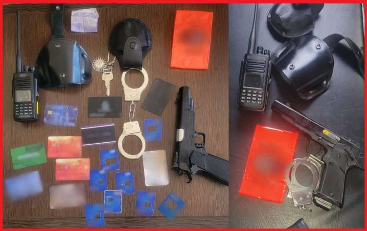 مضيفا أنه تم إيقاف المشتبه فيه في حالة تلبس بانتحال صفة شرطي، وذلك من أجل تعريض تاجر للنصب والاحتيال بدعوى التدخل لفائدته من أجل إعفائه من واجبات تعشير بضائع مستوردة، حيث أسفرت عملية الجس التي أخضع لها بعين المكان عن حجز مجسم مسدس بلاستيكي وأصفاد حديدية مهربة، فضلا عن جهاز لاسلكي وشارة تعريفية تشبه تلك التي تستعملها عناصر الشرطة.