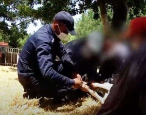 ينتقل المدير من أرض فلاحية ترك السجناء داخلها منهمكين في ترتيب أكياس من الشعير والقمح، إلى مزرعة حيث تنطلق حصص تمكين السجناء من مهارات فلاحية أخرى ضمنها العناية بأصناف متنوعة من المواشي.