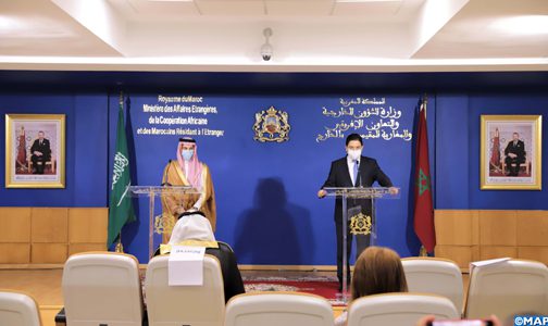 وأوضح الأمير فيصل بن فرحان، خلال الندوة الصحفية المشتركة التي أعقبت مباحثاته مع وزير الشؤون الخارجية والتعاون الإفريقي والمغاربة المقيمين بالخارج، ناصر بوريطة، (أوضح) أن هذه التحديات تقتضي ضرورة التنسيق والتعاون المشترك لمواجهتها، والعمل على إرساء دعائم السلم والأمن في كامل المنطقة .