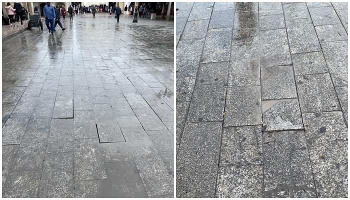 في السياق ذاته، أعرب تجار السوق المركزي عن استيائهم من الوضع الحالي، حيث رصدوا تجمع المياه أسفل الأرضية، ما تسبب في ظهور الأوحال وانتشار البعوض والروائح الكريهة، بالإضافة إلى معاناتهم وزوار المدينة العتيقة من المياه النتنة المتطايرة بسبب تحرك قطع الرصيف، موضحين أن هذا الإشكال يعكس نقصاً في جودة الأشغال المنجزة، معربين عن مخاوفهم من أن يُطلب منهم مرة أخرى إغلاق محلاتهم لإصلاح العيوب. وقال أحد التجار، في تصريح لجريدة «الأخبار»، «اضطررنا لإغلاق محلاتنا لعامين أثناء تنفيذ الأشغال، لكن النتائج لم تكن بالمستوى الذي توقعناه. اليوم نعاني من سوء جودة الأرضيات، وإغلاق ممر السيارات بمنطقة باب الأحد أثر سلباً على حركة الزبائن».