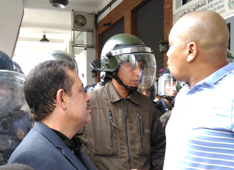 وحل شباط رفقة عشرات من انصاره وابنه نوفل بمقر النقابة الذي كان مطوقا بالأمن، حيث دخل شباط وانصاره في تدافع دام لساعات مع الامن، ورفع انصار شباط شعارات احتجاجية، في الوقت الذي بدى شباط مرتبكا وسط انصاره.