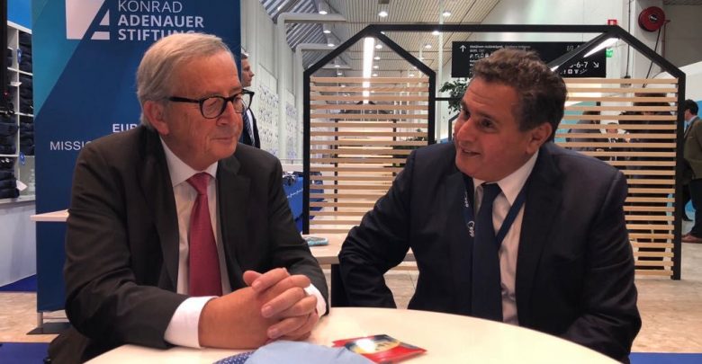 أجرى وزير الفلاحة و الصيد البحري والتنمية القروية والمياه والغابات، عزيز أخنوش، أول أمس (الخميس) بالعاصمة الفنلدية هلسنكي، مباحثات مع مسؤولين أوروبيين، والتقى أخنوش رئيس المفوضية الأوروبية جان كلود يونكر؛ كما أجرى مباحثات مع رئيس البرلمان الأوروبي أنطونيو تاجاني، وقد تمحورت المباحثات حول عدد من القضايا الراهنة ذات الاهتمام المشترك، خصوصا في ما يتعلق بالاتفاق الفلاحي واتفاقية الصيد البحري بين المغرب والاتحاد الأوروبي، على هامش فعاليات المؤتمر ال 25 للحزب الشعبي الأوروبي بهلسنكي، والذي يشارك فيه حزب التجمع الوطني للأحرار بوفد يقوده رئيس الحزب، أخنوش، إلى جانب القياديين في الحزب، أمينة بنخضرة ولمياء بوطالب، حسن بنعمر.