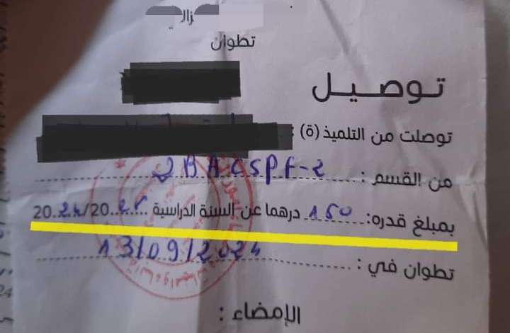 وحسب مصادر مطلعة، فقد تداولت صفحات فيسبوكية بتطوان وصولات لجمعيات آباء تطالب بمبلغ 150 درهما مقابل الانخراط، في حين تطالب إدارة المؤسسة التعليمية الثانوية المعنية بـ42 درهما فقط كمصاريف التسجيل، وهو الشيء الذي أثار جدلا واسعا ومطالب بتدخل السلطات المختصة لمراقبة ما يتم جمعه من أموال من قبل جمعيات الآباء مع كل دخول مدرسي.