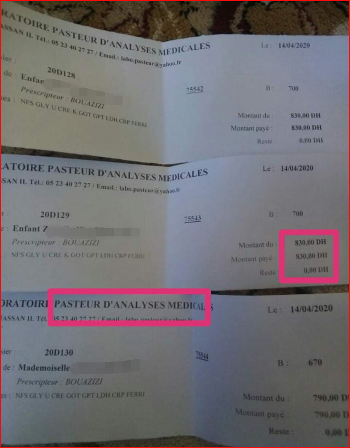 واستمعت لجنة التحقيق التابعة للمندوبية الإقليمية للصحة بسطات، لمجموعة من الأطر الصحية والإدارية المشرفة على علاج مرضى الفيروس، للوقوف على الجهة المتورطة في مثل هذه الأخطاء وجعل المرضى بوباء كورونا يجرون تحاليل تكميلية خارج المستشفى، وبالضبط حول كيفية اختيار أحد المختبرات بالمدينة الذي يحمل اسما شبيها بمعهد باستور وهو ما شكل لبسا لعدد من المرضى الذين وصفوا أنفسهم بضحايا عملية تحايل بعدما اعتقدوا أن المختبر تابع لمعهد باستور بالدار البيضاء ليفاجؤوا بمطالبتهم بأداء ثمن تلك التحاليل التي بلغت تكلفتها المالية 830 درهما لكل تحليلة تكميلية.