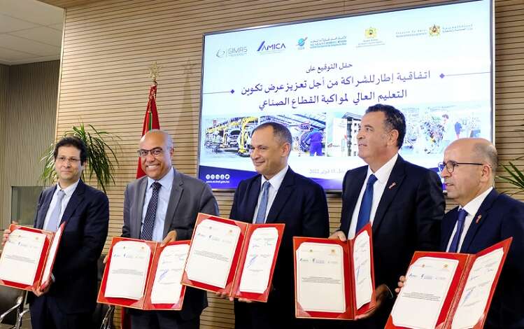 جرى أول أمس الثلاثاء بالرباط التوقيع على اتفاقية إطار لتعزيز تكوين المهندسين والأطر المتوسطة والتقنيين ذوي الكفاءات العالية في مختلف القطاعات الصناعية. وتضع هذه الاتفاقية، التي وقعها كل من وزير الصناعة والتجارة، رياض مزور، ووزير التعليم العالي والبحث العلمي والابتكار، عبد اللطيف ميراوي، ورئيس الاتحاد العام لمقاولات المغرب، شكيب لعلج، ورئيس الجمعية المغربية لصناعة وتركيب السيارات، عبد المومن الحكيم، ورئيس تجمع الصناعات المغربية للطيران والفضاء، كريم الشيخ، الشراكة بين القطاعين العام والخاص في خدمة تكوين متلائم مع الاحتياجات المتنامية والبالغة الدقة للمصنعين على مستوى الكفاءات المتخصصة. وتروم هذه الاتفاقية، التي تشكل ثمرة دراسة أطلقتها وزارة الصناعة والتجارة، بدعم من البنك الأوروبي لإعادة الإعمار والتنمية، وبشراكة مع الأطراف الموقعة المذكورة، بالإضافة إلى النهوض بالتكوين الراهن، إدراج وحدات للتكوين، بشكل تدريجي، في الكفاءات الشخصية، والإنتاج المستدام/الخالي من الكربون، والصناعة 4.0، فضلا عن إشراك الفاعلين الصناعيين في تحسين العرض التكويني للجامعات، لاسيما بالنسبة لقطاعي السيارات والطيران. وفي كلمة بالمناسبة، قال مزور “إننا مدينون بازدهار صناعتنا للموارد البشرية. فقد وضع صاحب الجلالة الملك محمد السادس، التكوين في صلب الأولويات الوطنية بهدف تزويد بلادنا بكفاءات قادرة على مواجهة تحديات المنافسة العالمية، وتعزيز سيادتنا الصناعية”، مضيفا أن “هذه الاتفاقية تستجيب لهذا الهدف ولتوصيات النموذج التنموي الجديد الذي تسهر الحكومة على تنزيله”. وأبرز الوزير الأهمية التي تكتسيها هذه الشراكة الجديدة بين القطاعين العام والخاص في خلق فرص الشغل، وذلك بفضل تكوين، حسب المقاس، على المستوى التقني والتدبيري وعلى مستوى المهارات الشخصية المنتظرة من مهندسي وأطر وتقنيي الغد، مؤكدا أنه مع الترشيد الأمثل للتعليم العالي -التشغيل، سيكون الشباب أكثر وأفضل انخراطا في تنمية وتحديث الصناعة الوطنية. من جهته، قال ميراوي “لقد شرعنا في ورش تحول متعدد الأبعاد، يهدف بالأساس إلى الارتقاء بجودة منظومة التعليم العالي والبحث العلمي والابتكار وتعزيز مساهمتها بشكل فعال في تنمية بلادنا”، مشيرا إلى أن الغاية الأساسية من هذا المشروع المهيكل هي إعداد رأسمال بشري بمؤهلات عالية تلبي بشكل أفضل الاحتياجات الحالية والمستقبلية لمختلف قطاعات الاقتصاد الوطني. وفي إطار هذه الاتفاقية، عبرت وزارة التعليم العالي والبحث العلمي والابتكار عن التزامها بتعبئة الجامعات لتكوين المهندسين والأطر المتوسطة والتقنيين العالين، طبقا للاحتياجات الخاصة المعبر عنها من قبل المصنعين عبر الاتحاد العام لمقاولات المغرب، والجمعية المغربية لصناعة وتركيب السيارات وتجمع الصناعات المغربية للطيران والفضاء، وذلك بهدف سد الفجوة الكمية والنوعية على مستوى تكوين المهندسين والأطر المتوسطة والتقنيين العالين بحلول سنة 2025. ويتعلق الأمر بملاءمة محتويات التخصصات الحالية المتعلقة بـ 10 فروع بالنسبة للمهندسين، و8 بالنسبة للتقنيين العالين والأطر المتوسطة وإحداث 13 تخصصا في المهن الجديدة للصناعة.