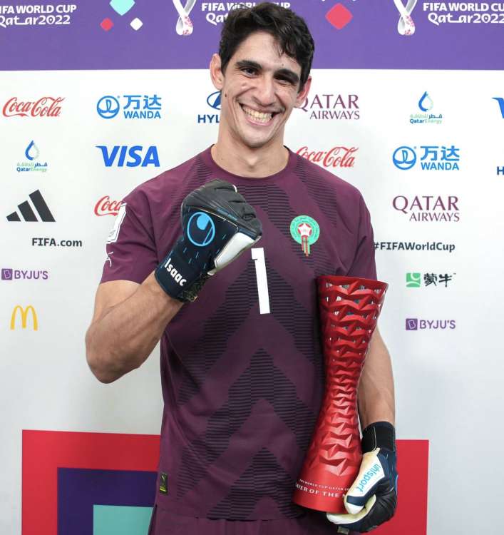 دخل حارس عرين أسود الأطلس، ياسين بونو، تاريخ كأس العالم وبات أكثر حارس مرمى يتم اختياره رجل المباراة في منافسات كأس العالم.