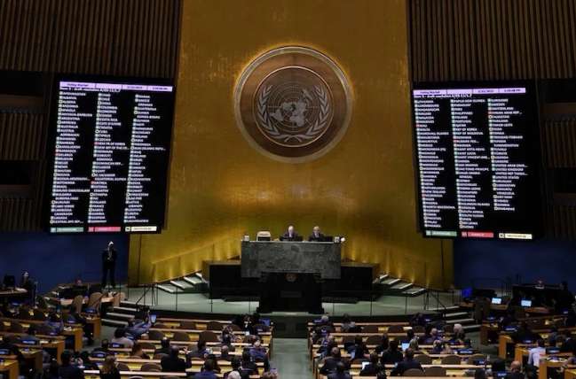 وكان المغرب قد امتنع عن التصويت وغاب عن الجلسة الاستثنائية للجمعية العامة للأمم المتحدة في مارس من السنة الماضية، قبل أن يختار هذه المرة التصويت لصالح القرار الأممي.
