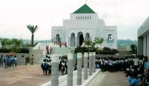 حين زار الرئيس الغابوني علي بانغو المغرب وتوقف للترحم على الملك الحسن الثاني، أعجب بضريح محمد الخامس أيما إعجاب وأصر على أن يجعل له نسخة في ليبروفيل. وما أن وصل إلى بلاده حتى شرع في تنفيذ الفكرة.