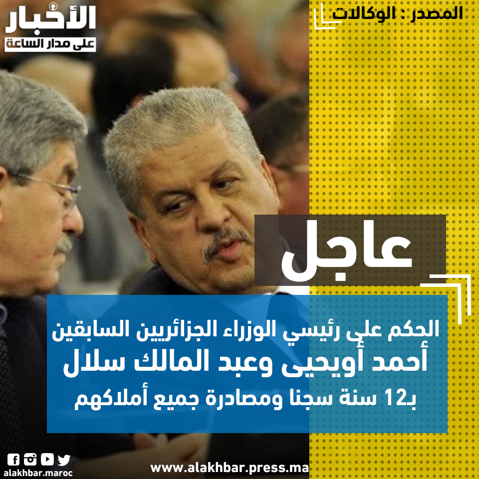 الحكم على رئيسي الوزراء الجزائريين السابقين أحمد أويحيى وعبد المالك سلال ب12 سنة سجنا ومصادرة جميع أملاكهم