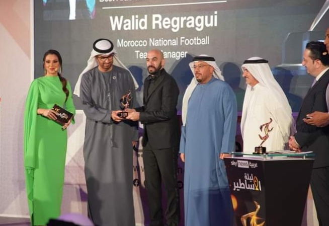وتسلم الركراكي، في حفل “ليلة الأساطير” الذي تنظمه شبكة “سكاي نيوز عربية”، بحضور عدد مهم من النجوم السابقين لكرة القدم، جائزة أفضل مدرب عربي عالمي، بعد قيادته للمنتخب الوطني المغربي لتحقيق إنجاز غير مسبوق في مونديال قطر، ببلوغه إلى نصف النهائي، وقبل ذلك قيادته لفريق الوداد إلى الظفر بثنائية البطولة الاحترافية ودوري أبطال إفريقيا.
