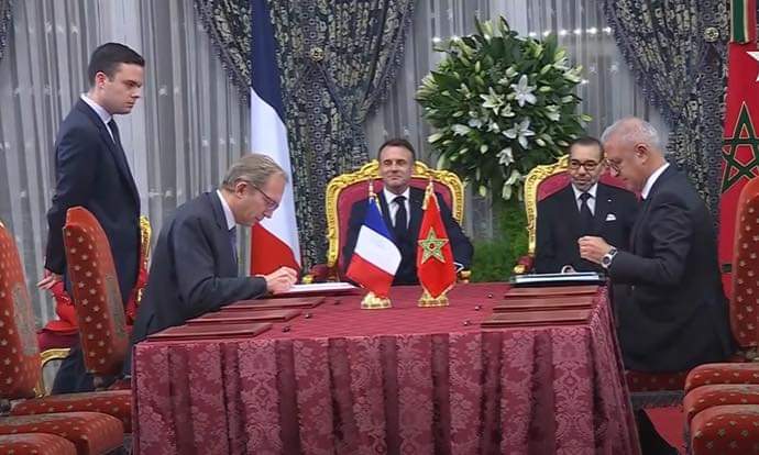 وقع المغرب وفرنسا، اليوم الإثنين بالقصر الملكي بالرباط، يوقعان 22 اتفاقية للتعاون ومذكرة تفاهم وبروتوكول في مجالات عديدة بين البلدين.