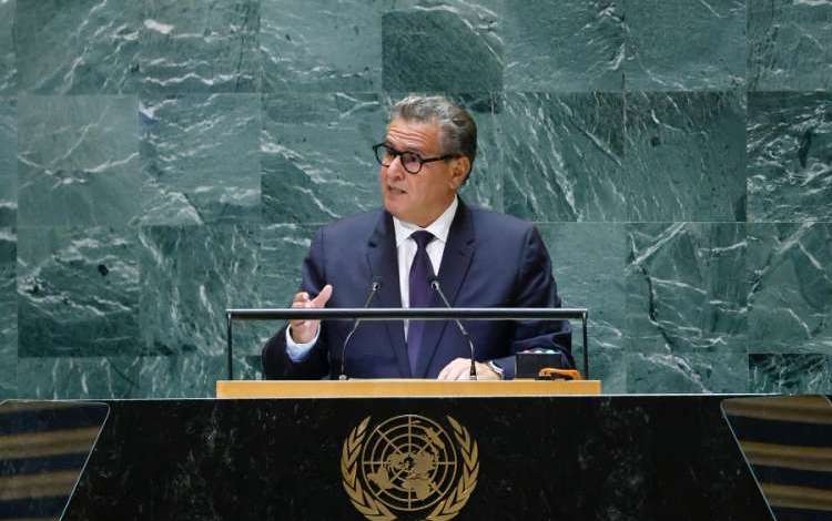 وذكر أخنوش، في كلمة باسم المغرب أمام الجمعية العامة للأمم المتحدة، بثوابت موقف المغرب كما جدد التأكيد عليها الملك محمد السادس للأمين العام للأمم المتحدة، وتتمثل في أن لا عملية سياسية خارج إطار الموائد المستديرة التي حددتها الأمم المتحدة، بمشاركة كاملة من الجزائر، وأن لا حل خارج إطار المبادرة المغربية للحكم الذاتي، وأن لا عملية سياسية جدية دون العودة إلى إيقاف إطلاق النار من طرف الميليشيات المسلحة كما ينادي به أعضاء مجلس الأمن.