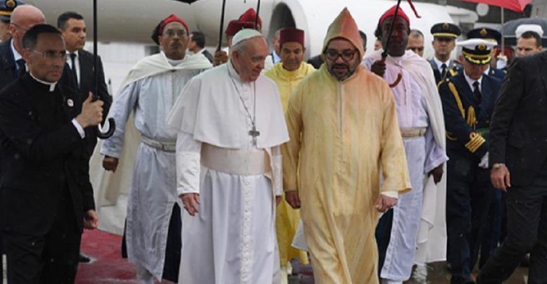 قال الملك محمد السادس، إن التاريخ المحدد لزيارة بابا الفاتيكان “اردناها أن تتزامن مع شهر رجب لعلاقته بأول تعارف بين الإسلام والمسيحية بعدما آواهم الحبشي حين طردهم المشركون من مكة”، مضيفا خلال الخطاب الذي ألقاه بساحة مسجد حسان بالرباط، بمناسبة الزيارة الرسمية التي يقوم بها بابا الفاتيكان، فرانسيس، إلى المغرب، أن “التطرف الذي يعرفه العالم مرده إلى الجهل بالآخر والجهل عامة” حسب تعبير الملك محمد السادس.