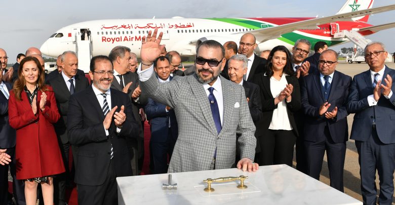 إثر ذلك، أعطى الملك، انطلاقة أول طائرة من الجيل الجديد من طائرات الخطوط الملكية المغربية، بوينغ 9-787 دريملاينر، التي اقتنتها الشركة مؤخرا، وتنضاف أول طائرة بوينغ 9-787 هاته، التي قدمت الشركة الوطنية بشأنها طلبية، الأكبر حجما والأكثر فاعلية، إلى الخمس طائرات بوينغ 8-787، التي تستغلها الخطوط الملكية المغربية، مما سيمكن هذه الأخيرة من توفير رحلات جوية نحو وجهات جديدة عبر رحلة مباشرة، وبذلك تعزز شبكتها التي تشمل أزيد من 90 وجهة دولية. ويفوق طول طائرة البوينغ 9-787 نظيرتها 8-787 بستة أمتار، وتبلغ طاقتها الاستيعابية 302 مسافر (بأكثر من 28 مقعد مقارنة مع بوينغ 8-787)، كما يمكنها الطيران على مسافة تتجاوز 14 ألف و140 كيلومتر بنظام نموذجي من مستويين. وستمكن هذه القدرة الإضافية الخطوط الملكية المغربية من توسيع مجال عملها، مع تحسين الربحية الخاصة بخطوطها، سيما بفضل النجاعة الطاقية لهذه الطائرة، مع تقليص استهلاك البنزين وانبعاثات الكربون بنسبة 25 في المائة مقارنة مع الطائرات الأخرى طويلة المدى.