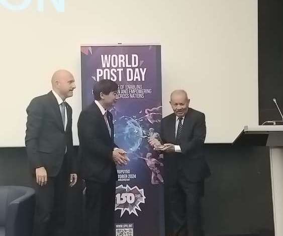 وقد تم تسليم هذه الجائزة رسمياً يوم 9 أكتوبر 2024 في بيرن، بسويسرا، إلى السيد لحسن أزولاي، سفير صاحب الجلالة لدى الاتحاد السويسري وإمارة ليختنشتاين، خلال مراسيم الاحتفال باليوم العالمي للبريد، الذي يتزامن هذا العام مع الذكرى 150 لتأسيس الاتحاد البريدي العالمي.