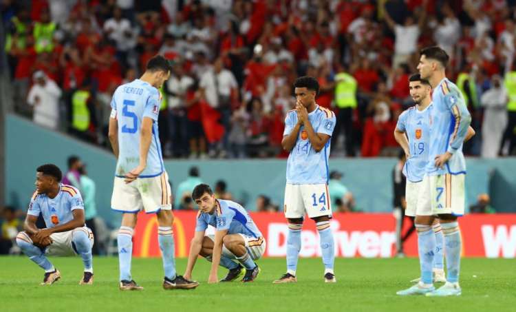 صدمة أصابت المنتخب الإسباني ومعه إسبانيا قاطبة، بعد الإقصاء من دور ثمن نهائي كأس العالم قطر 2022 على يد المنتخب الوطني، في المباراة التي جمعت المنتخبين عشية اليوم الثلاثاء بضربات الجزاء (3-0).