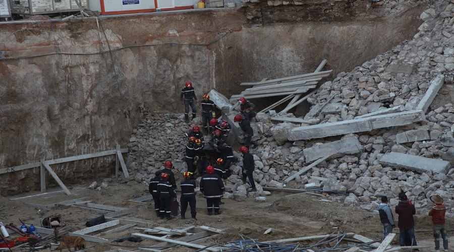 وكانت عمليات الانقاذ قد تواصلت لعدة ساعات، من أجل استخراج جثتي العاملين المدفونتين تحت الأنقاض إثر انهيار السور الخارجي لأحد المصانع المهجورة، المجاور لورش بناء عمارة، يقع بملتقى شارع “لاجيروند” وزنقة “خزامة”، بعمالة مقاطعات الفداء – مرس السلطان.