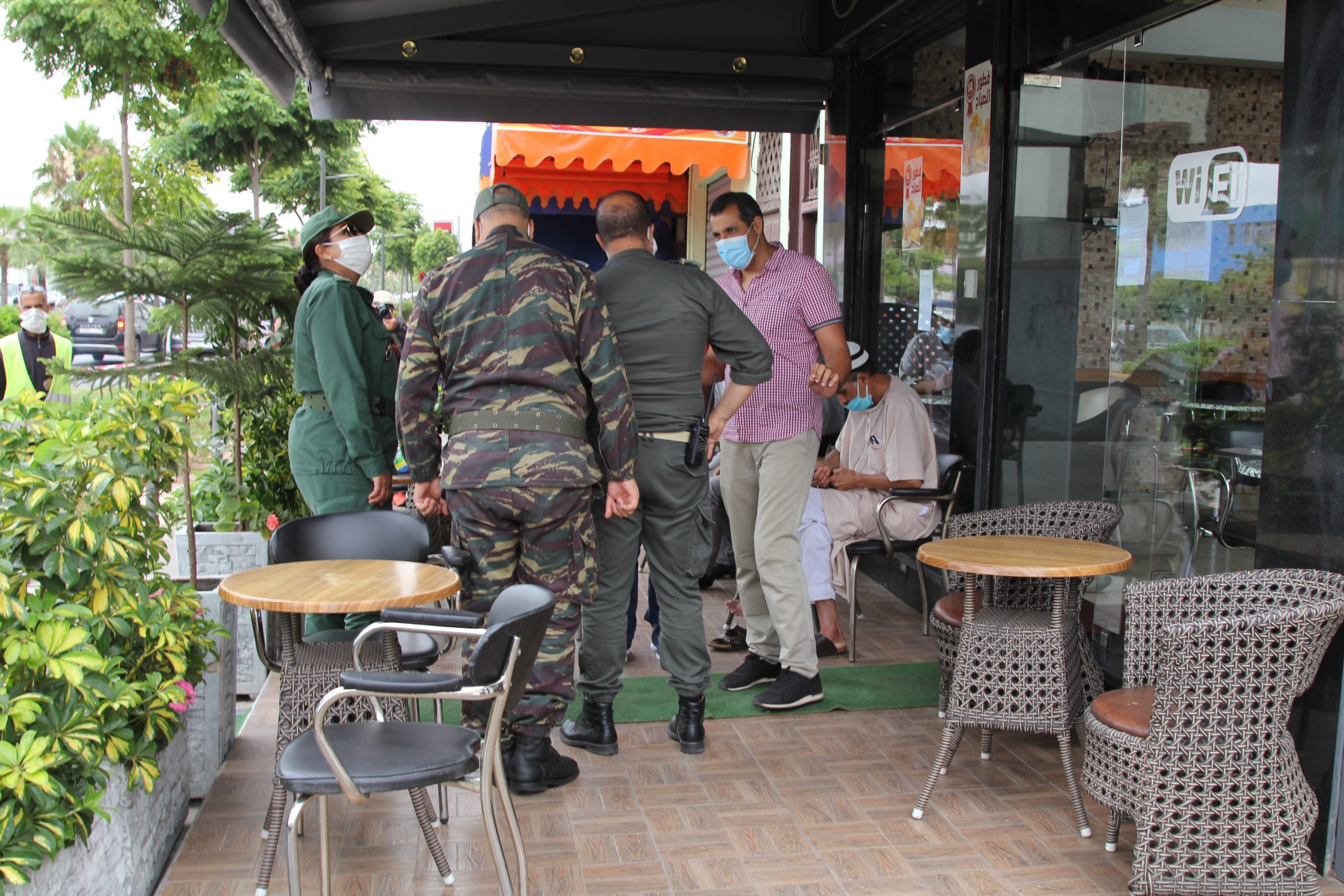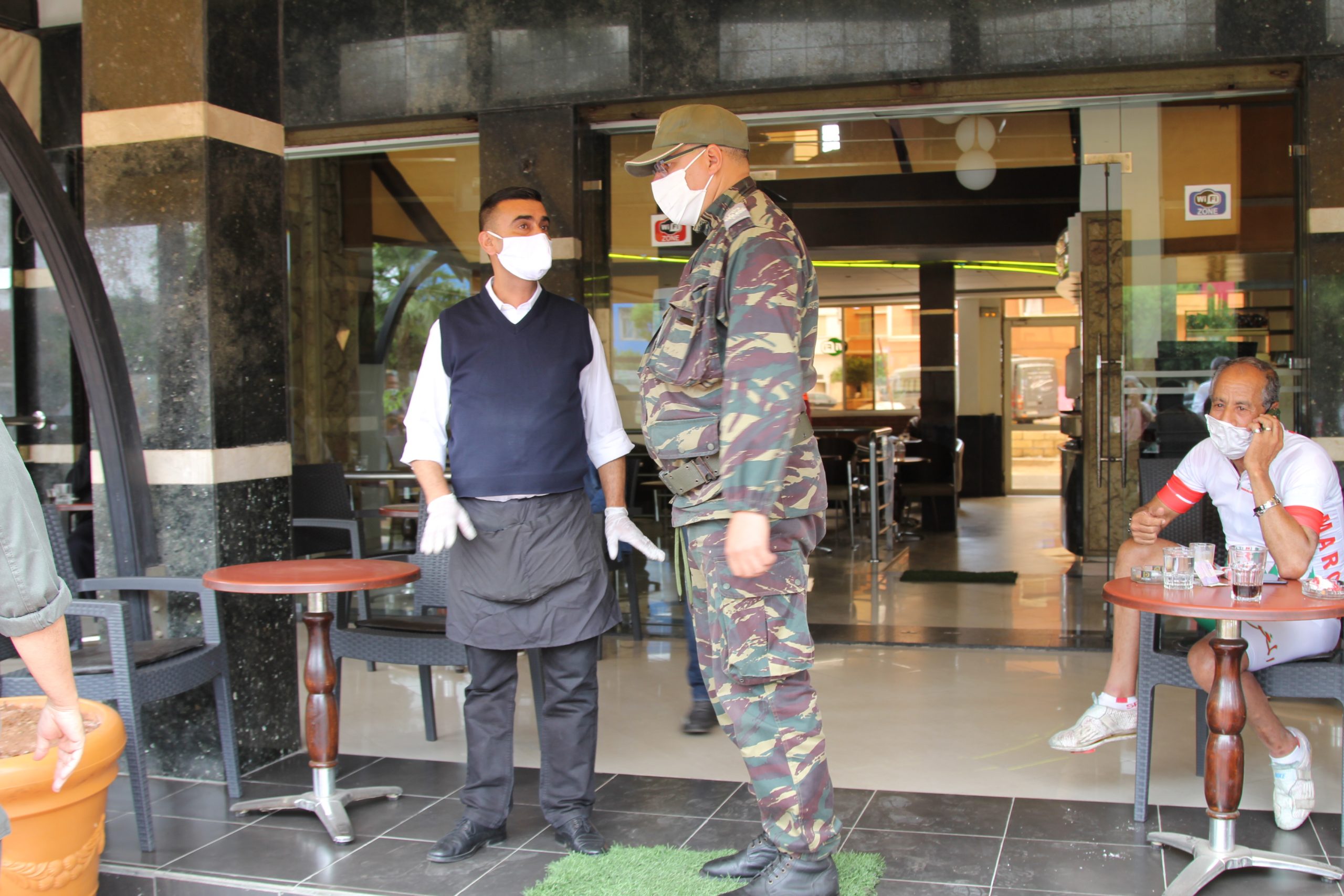 وقد سهرت السلطات، على تتبع و مواكبة عملية العودة لأنشطة المقاهي و المطاعم ومراقبة مدى احترامها للشروط الصحية التي وضعتها السلطات ومنها استقبال فقط 50 في المائة مما تسمح به الطاقة الاستيعابية للمحل مع وضع الطاولات بشكل متباعد، و وضع الكمامات من طرف جميع العاملين بالمكان وتعقيم الطاولات والكراسي والأواني بشكل مستمر.