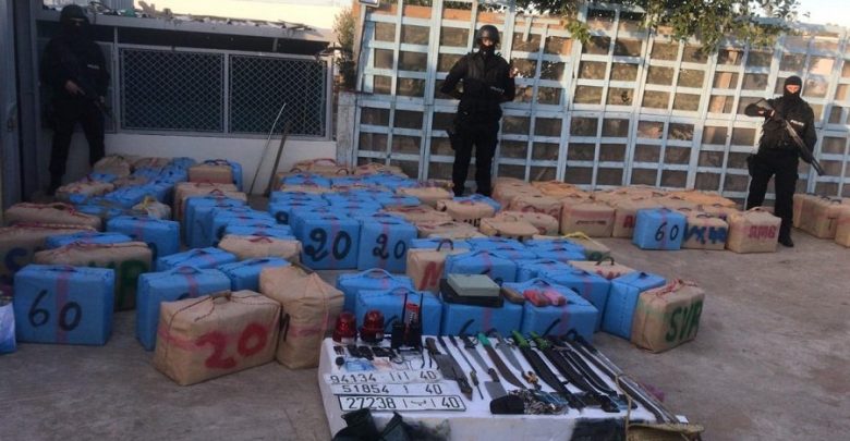 وذكر بلاغ للمديرية العامة للأمن الوطني ، أنه جرى تنفيذ هذه العملية الأمنية بضيعة فلاحية بدوار “الدعيدعات” بمنطقة كزناية، على بعد 20 كيلومترا تقريبا من مدينة طنجة، حيث أسفرت عمليات التفتيش المنجزة عن حجز 288 حزمة كبيرة من مخدر الشيرا يناهز وزنها الإجمالي 8 أطنان، فضلا عن ضبط ثلاثة زوارق مطاطية ومعدات للملاحة البحرية عبارة عن منبهات ضوئية وبوصلة و20 برميل مملوء بالمحروقات وكذا جهازين للاتصال اللاسلكي.