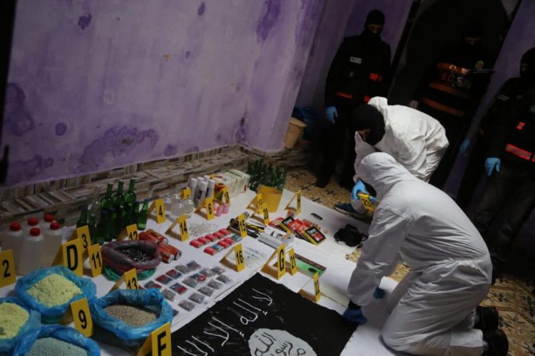 وأضاف البلاغ أن الأبحاث والتحريات المنجزة على ضوء الإفادات الأولية لأعضاء هذه الخلية، مكنت من تحديد مسكن في المدينة القديمة بتطوان كانوا يستغلونه كمكان آمن لعقد اجتماعاتهم والتخطيط لمشاريعهم الإرهابية، مشيرا إلى أنه بإرشاد من المشتبه فيهم تم الانتقال إلى المسكن المذكور وإجراء مسح كامل لمشتملاته ومرافقه من طرف تقنيي الكشف عن المتفجرات بعدما تم اتخاذ كافة التدابير الأمنية والوقائية لضمان سلامة السكان والعائلات المجاورة.