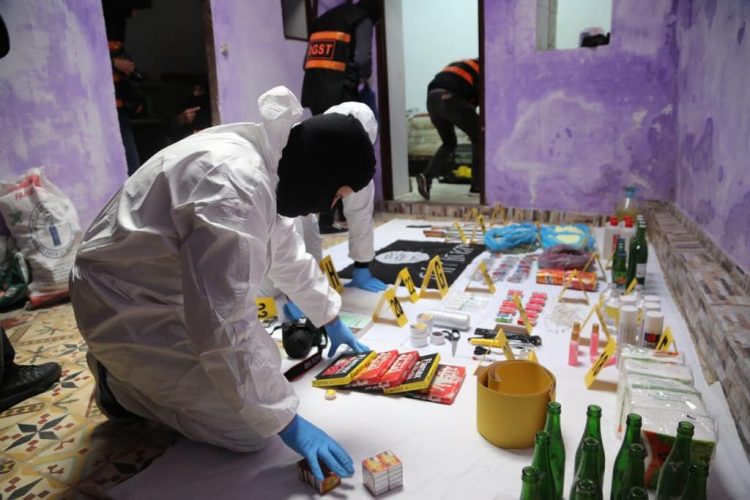 وأضاف البلاغ أن إجراءات التفتيش مكنت كذلك من حجز مجموعة من المعدات والمستحضرات الكيميائية التي تدخل في صناعة العبوات المتفجرة التقليدية، من بينها أكياس تحتوي على مادة الكبريت والفوسفور، وبراميل تضم وقود البنزين، وقنينات مملوءة بالكحول الحارق، وأكياس معبأة بكميات كبيرة من براغي لولبية وكريات معدنية ومسامير، بالإضافة إلى أسلاك كهربائية وبطاريات إلكترونية، وقنينات زجاجية فارغة يشتبه في تسخيرها لتحضير قنينات المولوتوف، ومواد سائلة مشبوهة سوف يتم عرضها على الخبرة التقنية لدى مختبر الشرطة العلمية والتقنية.