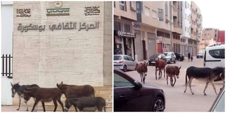 وتساءل رواد المواقع الاجتماعية، من خلال نشر صور لقطيع من الحمير يتجول بدروب وأحياء بوسكورة عن مشهد اعتادوا عليه أمام غياب تدخل الجهات المختصة. وعبرت الفعاليات نفسها عن استغرابها للأمر الذي سيساهم، لا محالة، مع فترات الجفاف، في اندثار الفضاءات الخضراء التي تم إنجازها بملايين السنتيمات من المال العام وباتت تشكل مراعي لتلك الحمير.