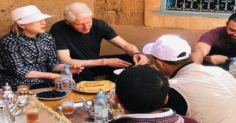 تداول رواد مواقع التواصل الاجتماعي، على نطاق واسع، صورة للرئيس الأمريكي السابق بيل كلينتون وزوجته هيلاري، وزيرة الخارجية الأمريكية السابقة، وهما بصدد تناول وجبة إفطار مغربية، في ضيافة إحدى الأسر بجماعة أوريكا إقليم الحوز، ضواحي مدينة مراكش.