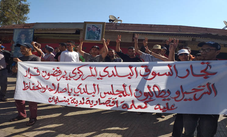 نظم عدد من تجار السوق البلدي «المارشي» ببنسليمان، صباح أول أمس الأربعاء، وقفة احتجاجية للتعبير عن رفضهم قرار ترحيلهم للسوق الجديد، وذلك بسبب ضيق المساحات التي تم تخصيصها لهم وغياب الشروط المواتية لممارسة تجارتهم داخل الفضاء الجديد والذي لا يستجيب بحسب تصريحات المحتجين للشروط المعقولة، وكذا للتعبير عن رفضهم قرار هدم السوق القديم.