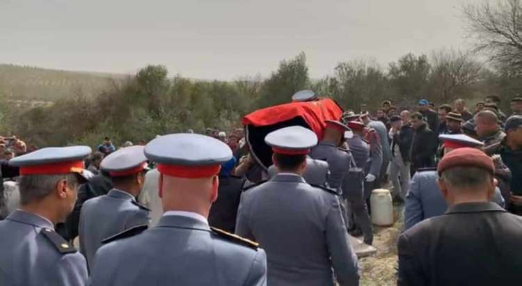 وتم تشييع الجنازة بإقليم صفرو، ودفن جثمان الراحل وفق المراسيم العسكرية، بحضور ضباط كبار من جهاز الدرك الملكي، ليتم تسليم والدي الدركي الراحل العلم الوطني الذي كان يغطي جثمانه أثناء تشييع الجنازة، وفقا للتقاليد العسكرية.
