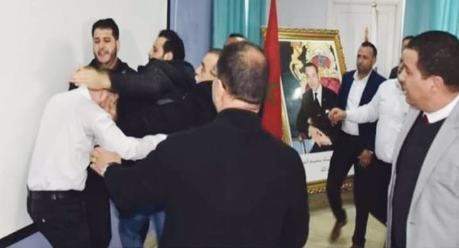 تحولت جلسة انتخاب رئيس الجماعة الحضرية للمضيق ونوابه، أول أمس الاثنين، إلى حلبة ملاكمة وتبادل اللكمات والعنف بين بعض المستشارين، وذلك بسبب تبادل اتهامات بالكولسة المسبقة، وتهريب المستشارين، وكذا تبعات الاحتقان والصراعات القوية بين من دعم المستشار ادريس لزعر عن حزب الأصالة والمعاصرة الذي فاز بالرئاسة، ومهدي الزبير عن حزب الحركة الشعبية، الذي احتفظ بكامل حظوظه حتى الساعات الأخيرة، وكان يدعمه مستشارون عن «البام» لكنهم غيروا رأيهم خوفا من العقاب الحزبي في حال تصويتهم ضد مرشح حزبهم.