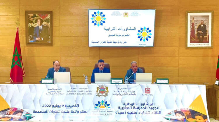 انعقدت أول أمس الخميس بمقر ولاية جهة طنجة تطوان الحسيمة، أشغال المشاورات الترابية لتجويد المدرسة العمومية، على مستوى العمالة، حيث تم إصدار توصيات بضرورة العمل على توفير مؤسسات تعليمية وبنيات تحتية حديثة ومنفتحة وتعزيزها بفريق بيداغوجي يتحلى بروح المبادرة في أفق تحقيق الغاية الكبرى المتمثلة في تجويد المدرسة العمومية المغربية، وضمن التوصيات أيضا التي تم الإجماع عليها ضرورة تمكين التلميذ من التعلمات الأساسية وضمان شروط استكمال المسار التعليمي الإلزامي، وتحفيز الأستاذ والحرص على تكوينه وضمان مساهمته في تحقيق النجاح الدراسي للتلميذ.