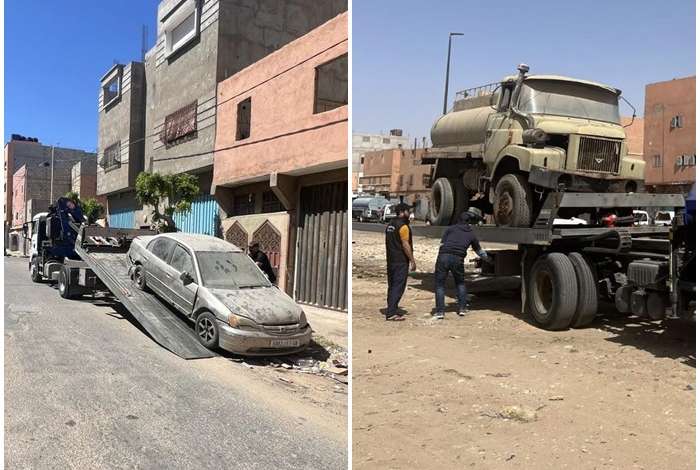 وتجري عملية إزالة السيارات المتهالكة من الشوارع والأزقة بتنسيق مع السلطات المحلية، حيث يتم نقلها إلى المحجز الجماعي بواسطة شاحنات الجر المخصصة لهذا الغرض.