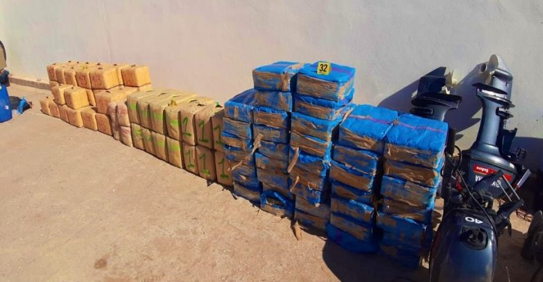 وذكر بلاغ للمديرية العامة للأمن الوطني أن إجراءات البحث المنجزة في هذه القضية أسفرت عن رصد أحد المنازل بمنطقة صحراوية تبعد بحوالي 12 كيلومترا في الجنوب الغربي لمدينة طانطان، يشتبه في تسخيره كقاعدة خلفية لتخزين المخدرات والمعدات البحرية المستعملة في التهريب، حيث تم توقيف مالكه البالغ من العمر 43 سنة، وحجز 101 رزمة من مخدر الشيرا تزن طنين و988 كيلوغرام، فضلا عن ضبط أربعة قوارب مطاطية وخمس محركات، و12 حاوية للبنزين تزن 720 لترا، علاوة على سيارة رباعية الدفع وبندقية صيد محشوة ب16 خرطوشة.