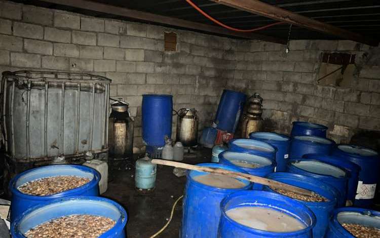ومكنت عملية التفتيش من إيقاف شخصين وحجز ما يزيد على 10 أطنان من مسكر ماء الحياة معدة للاستهلاك، وحاوية بلاستيكية من سعة 200 لتر، ومعدات تقليدية تستعمل في تقطير المسكر، منها 8 طنجرات للضغط كبيرة من سعة 100 لتر، إضافة إلى قنينات غاز من الحجم الكبير، ومعدات أخرى تدخل في عملية التقطير. كما مكنت عملية التفتيش من حجز أسلاك نحاسية تستعمل في عملية التبريد، إضافة إلى دراجة نارية لا تتوفر على الأوراق القانونية تستعمل في عملية توزيع المواد المصنعة بالمستودع.